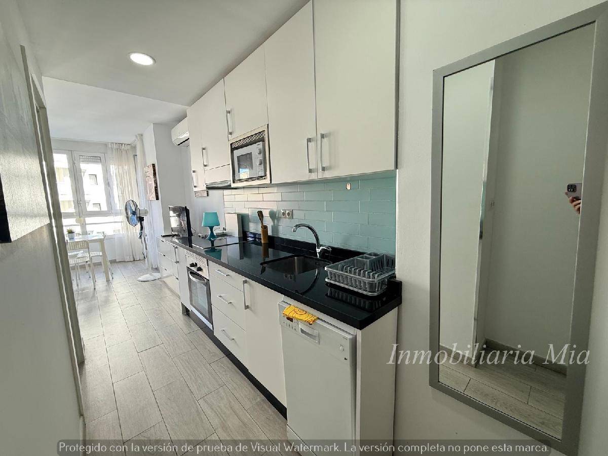 Ref: C-4758. Estudio totalmente reformado, muy luminoso, baño completo con ducha, cocina office equipada, 1 dormitorio interior, salón comedor, aire acondicionado, Licencia turística en vigor. Conserje 24 hs y piscina comunitaria.
